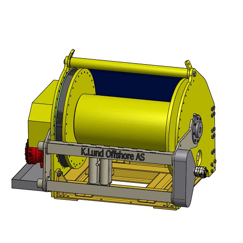 Hagglunds hydraulic motors connected to drive gear with ratio 7,17:1 to ensure low hysteresis in constant tension mode. Can also be configurated to active heave compensated mode.